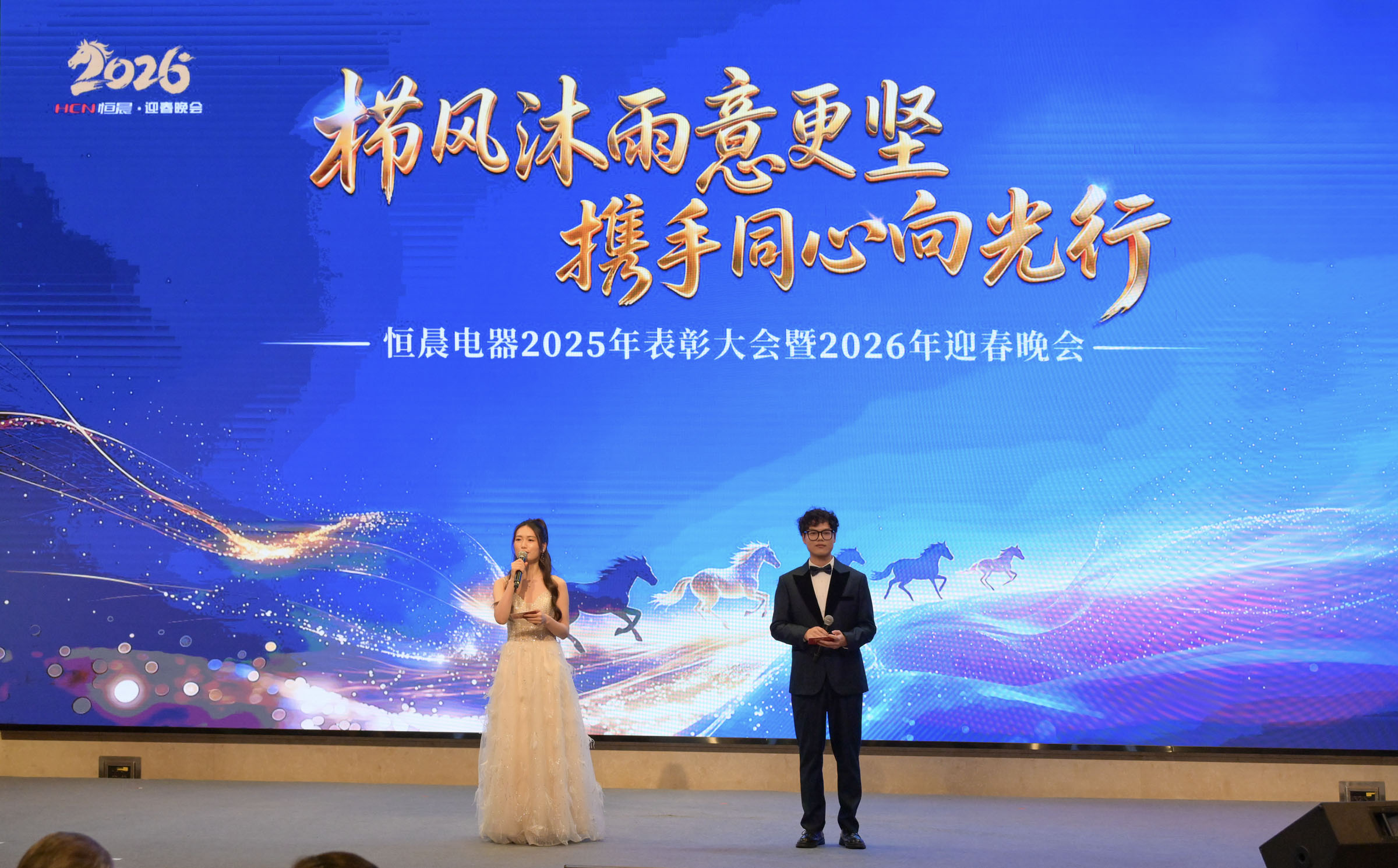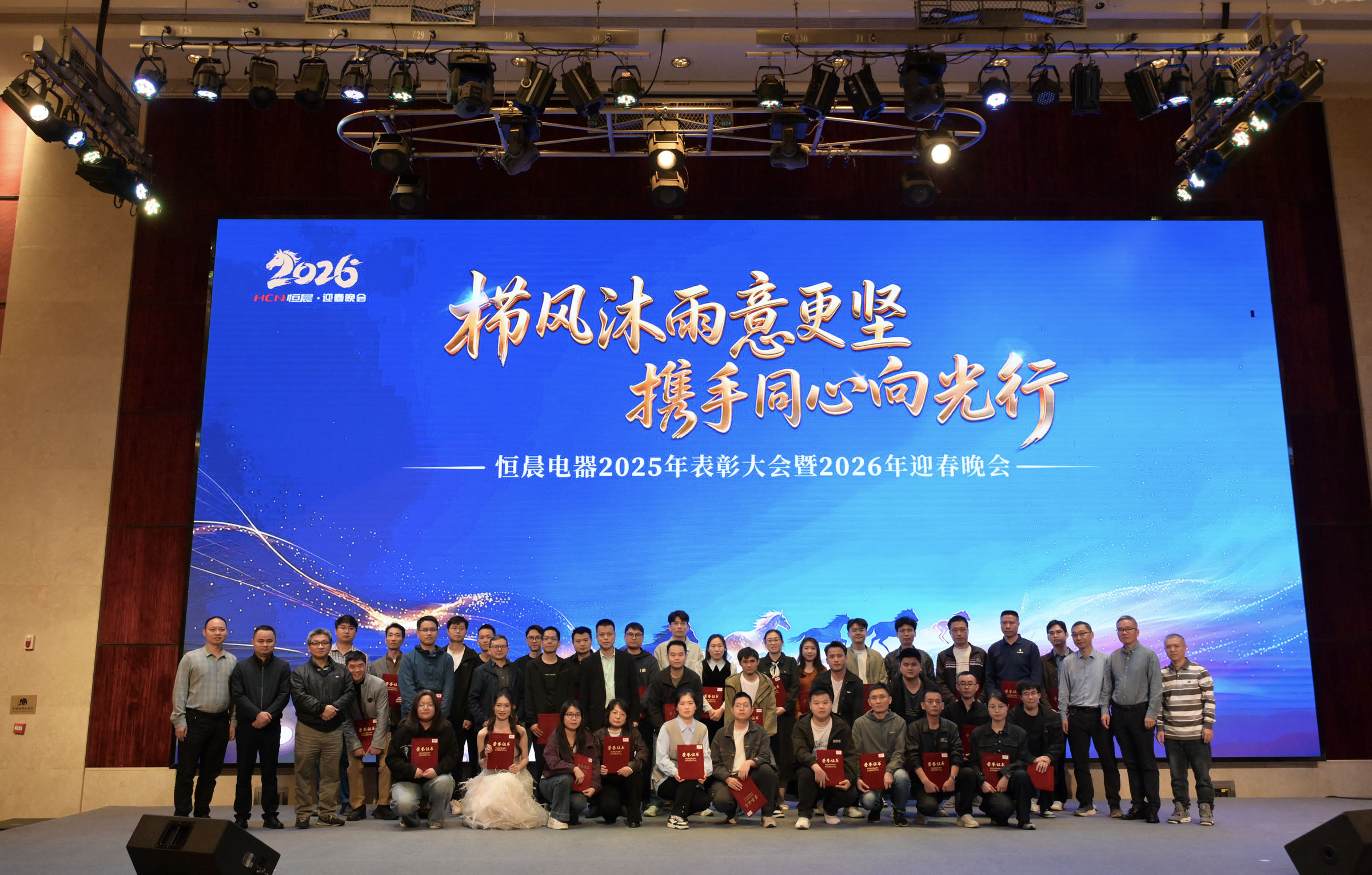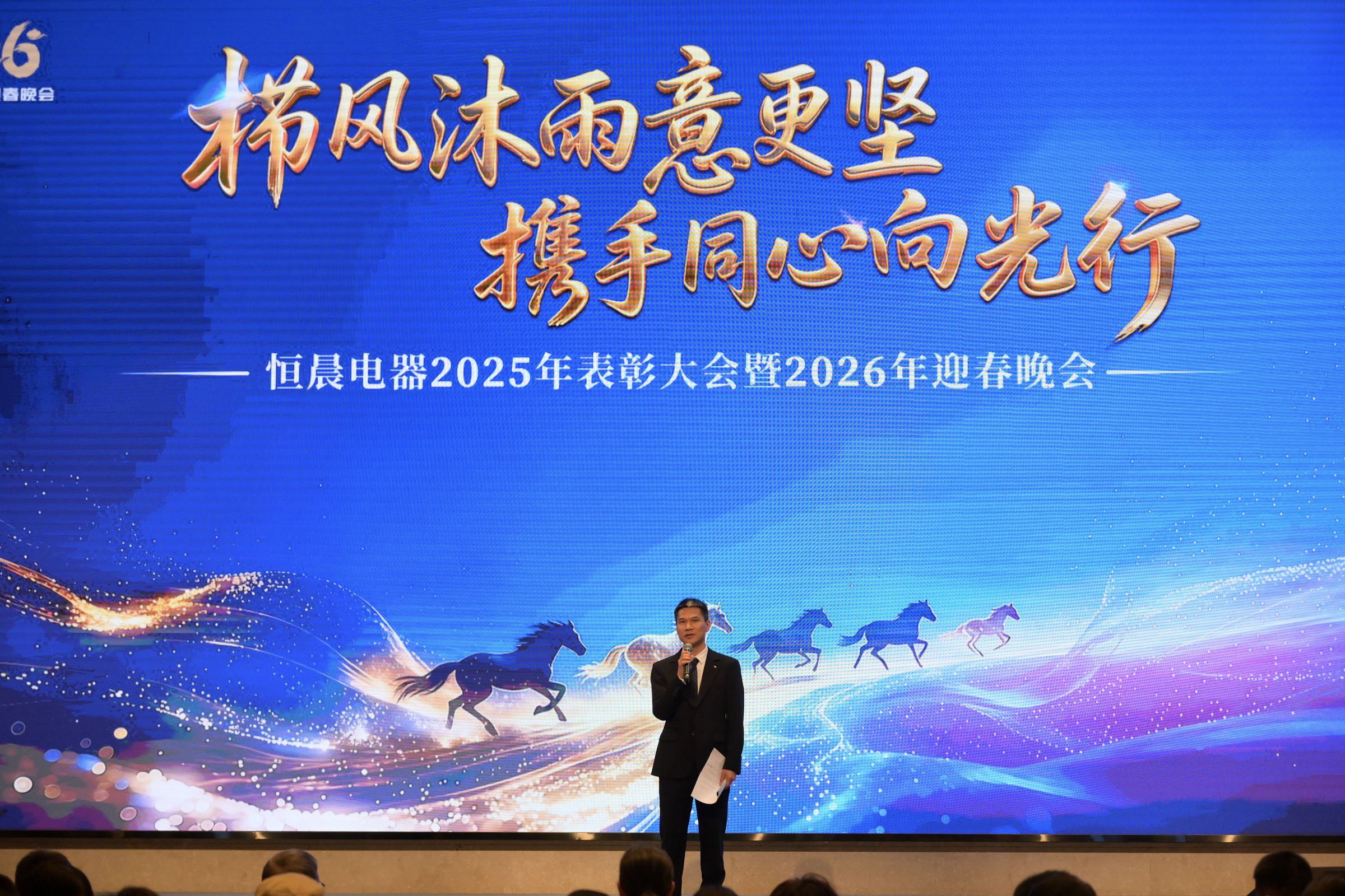 2月6日,恒晨电器2025年总结表彰大会暨2026年迎春晚会在惠州皇冠假日度假酒店隆重举行。全体恒晨人齐聚一堂,以“栉风沐雨意更坚,携手同心向光行”为主题,共同回顾奋斗历程,展望崭新一年。