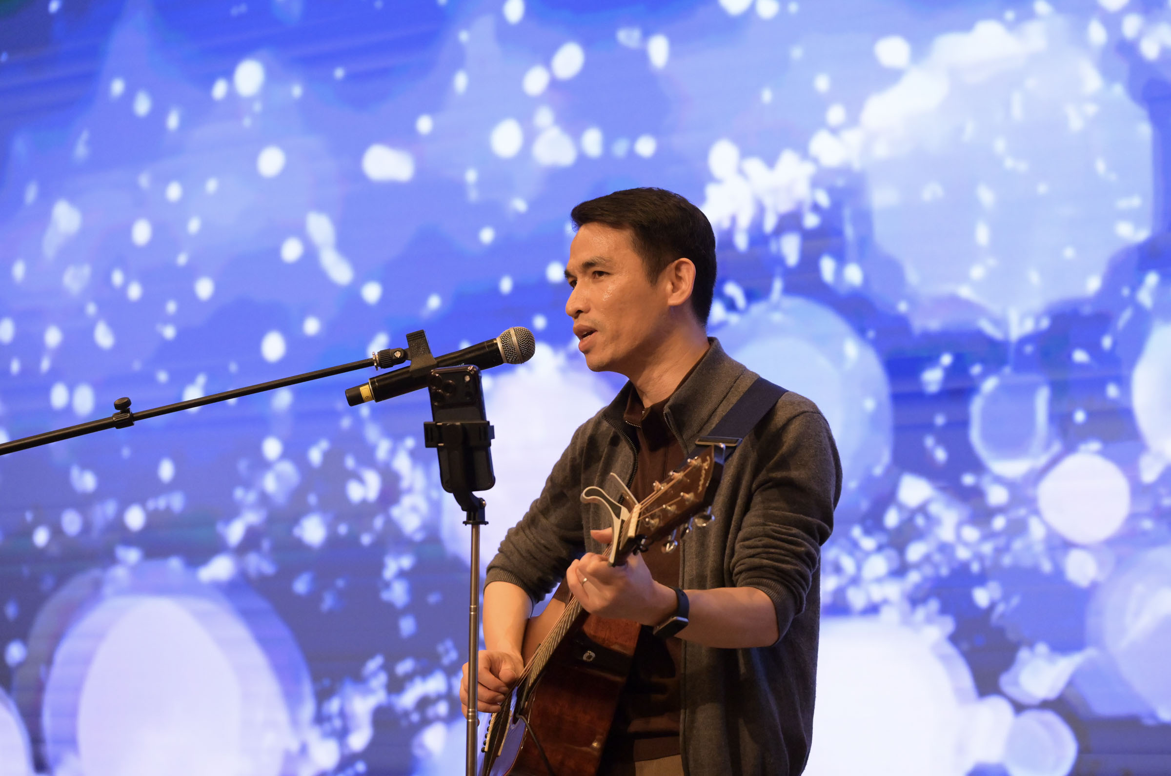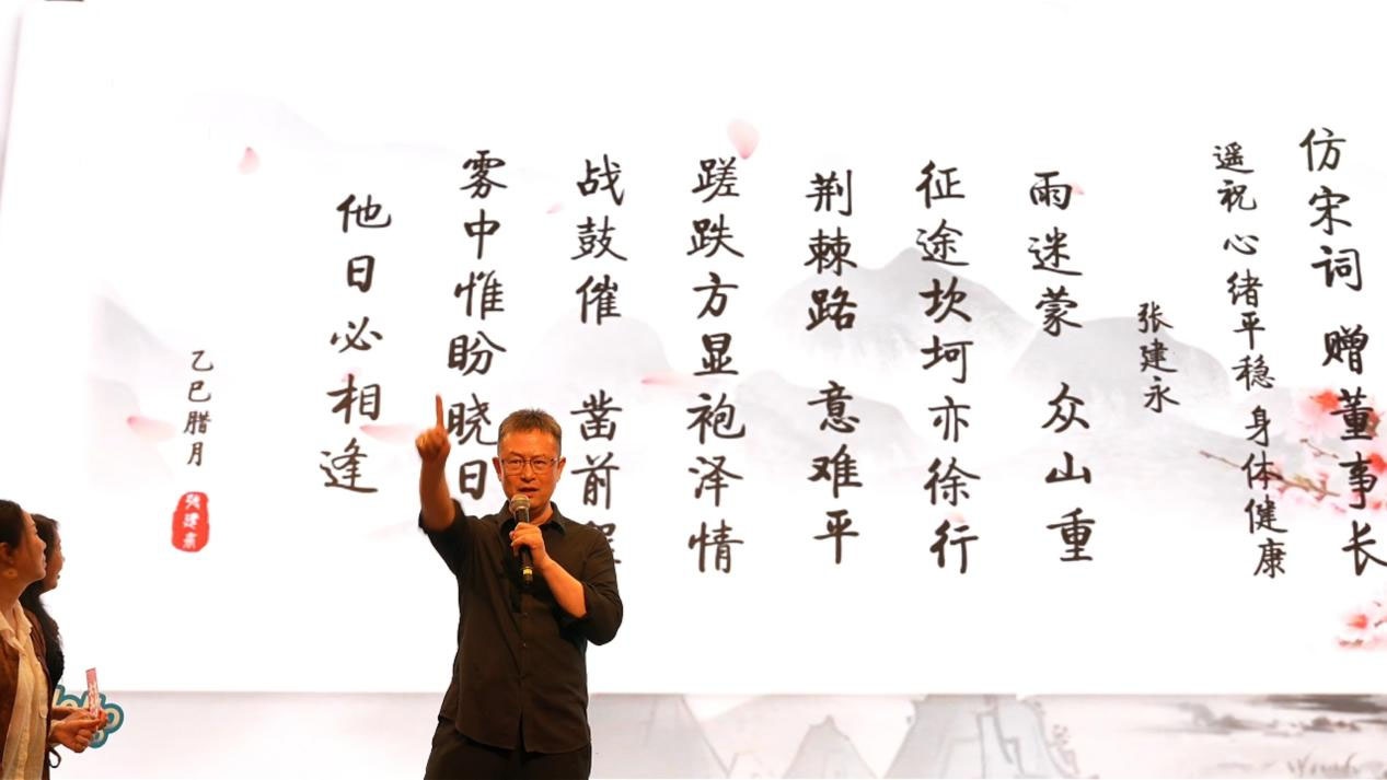 张建永总以一首深情的仿宋词遥寄董事长,字里行间满含对董事长平安健康的诚挚祝愿,将晚会气氛推向高潮。