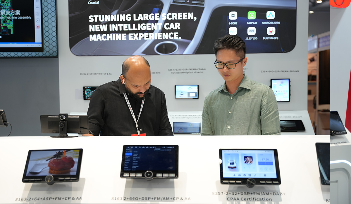 在智能出行展区,恒晨电器带来多款领先行业的汽车电子解决方案,涵盖安卓系统智能车机、无线CarPlay互联以及全新便携式PND车机产品。新一代平台运行流畅、性能卓越,在智能交互与系统稳定性之间实现完美平衡,为用户打造更智慧、更便捷的车载体验。